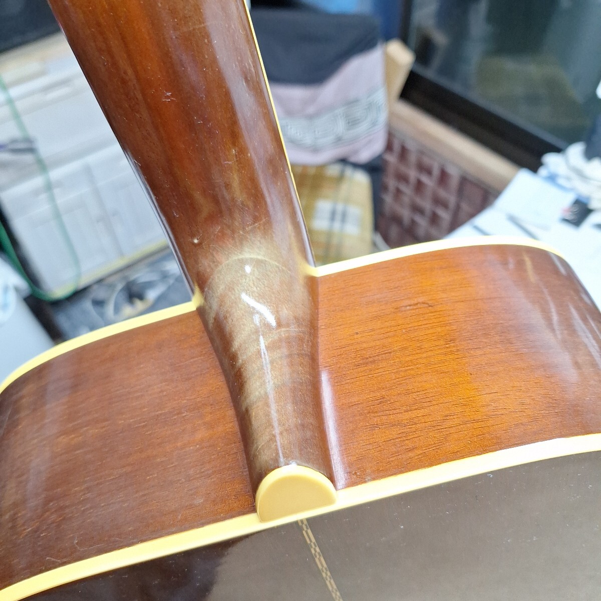 傷に関しては、目立つものは御座いませんが、サウンドホール周りにピックによるスクラッチの跡、ヘッド、ネックヒール、バックに白濁が、あります。