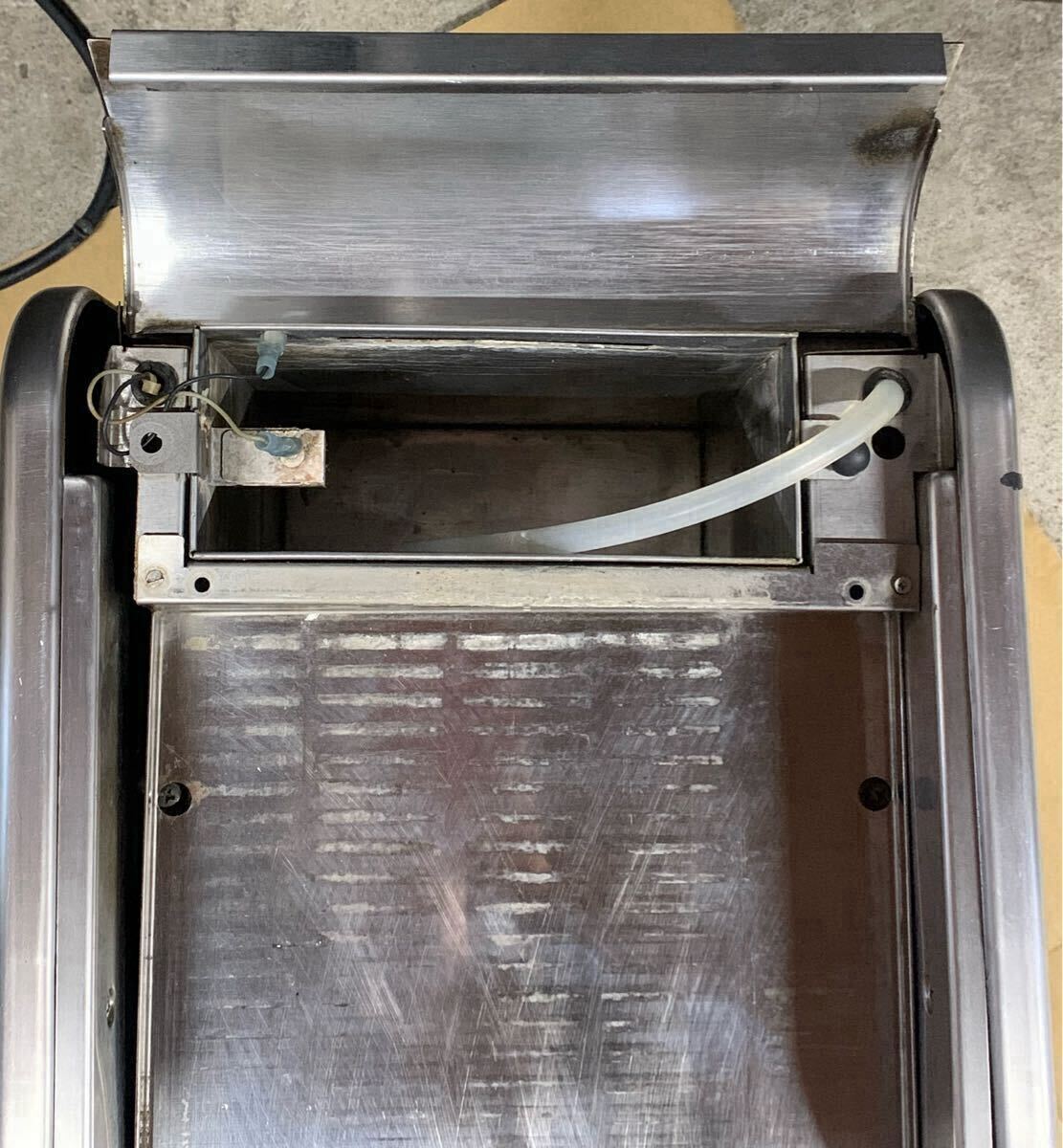 上部フタを開けた内部には、配線・チューブなどに経年劣化が見られます