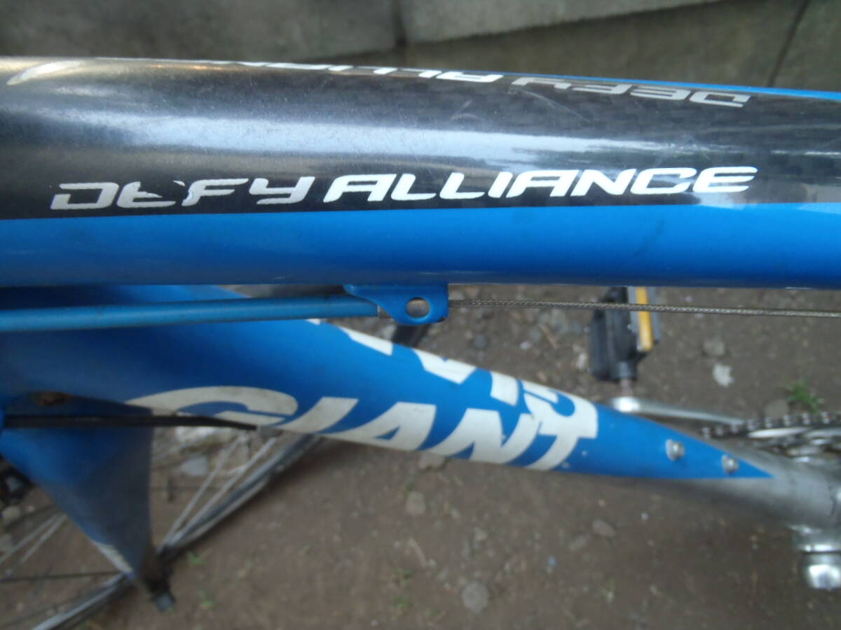 2009年から登場したGIANTのエンデュランス(長時間にわたる耐久力や忍耐力を意味する英単語)モデル「DEFY」。 その中でもALLIANCEは、カーボン素材とアルミ素材のハイブリッドフレームです。 当時、上位フルカーボンバイクと同等の 剛性感と優れた振動吸収性が、しなやかで芯のある走りを生むと言われていました。 私自身、定年後自転車いじりを始めたもので、正直細かいことがわかりません、2年前に始めてパンク修理をやったレベルで、この自転車もデザインが気に入って手に入れましたが、宝の持ちぐされといいましょうか、というわけで手放します。 前の方もご自身でいじられてた方と思われます。 いろいろ調べての記載になるので、見当違いなことが書かれているかもしれませんが、ご勘弁ください。 シマノのロードバイク向けコンポのレースグレードである、ULTEGRAになっています、ブレーキシフトのみDURA-ACEです。スプロケットが、9枚です。 ハンドルバーのテープが劣化しているので、交換された方がよいとおもいます。 ブレーキ・ギヤチェンジ等、私のレベルでは、問題ないように思いますが、試乗してからの購入で構いません。 画像の追加3枚残っていますので、必要な画像追加できます。 直接の引取(東京都・三鷹市)をおねがいします。発送はできません。 NC/NRでお願いします。