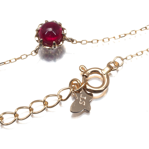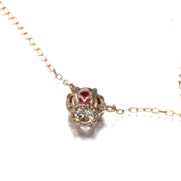 艶やかな光沢を持つルビーの美しい彩をシンプルに飾ったサマンサティアラのネックレス。台座裏にはダイヤモンドの瑞々しい煌めきを飾った素敵な演出もございます。 |