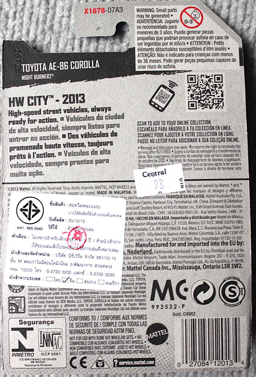 ホットウィール TOYOTA AE-86 COROLLA になります。未使用ですが、状態は写真にてご判断願います。