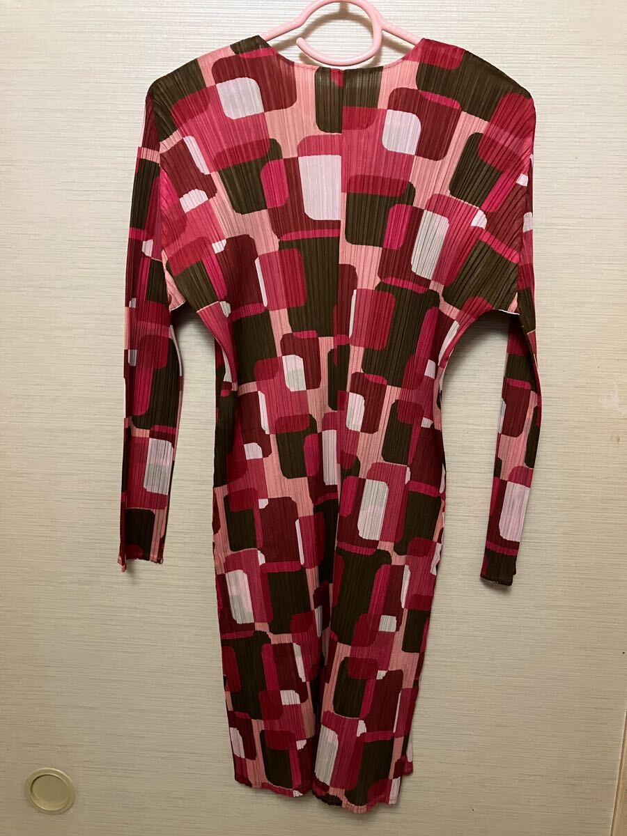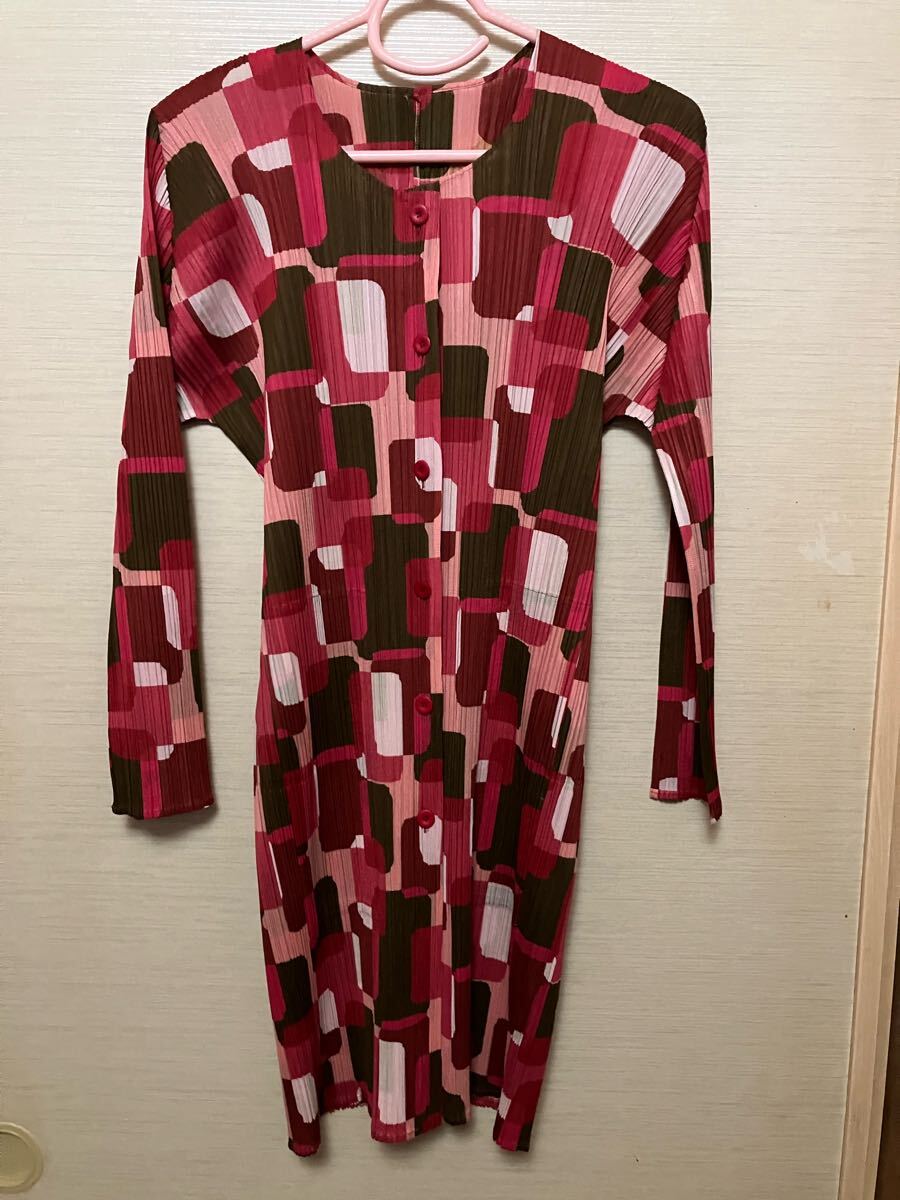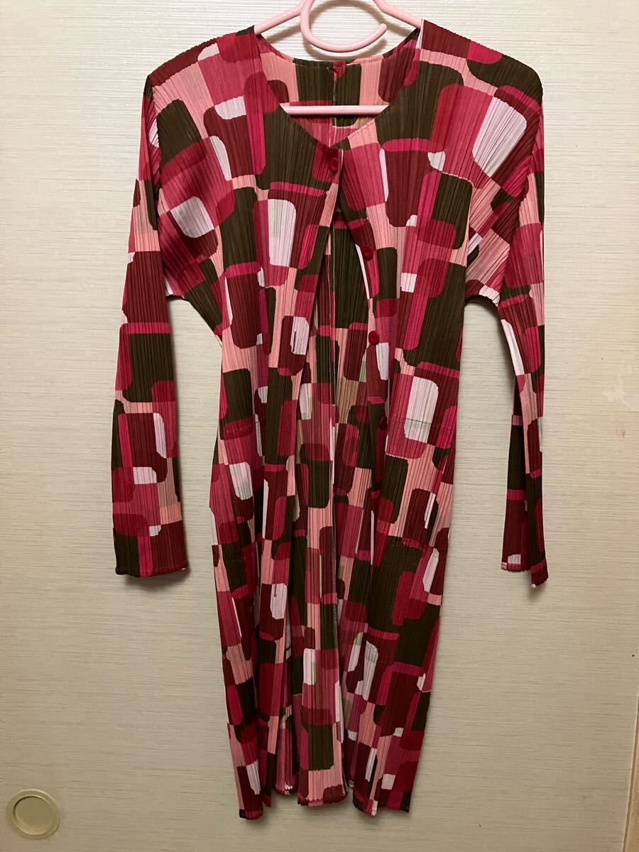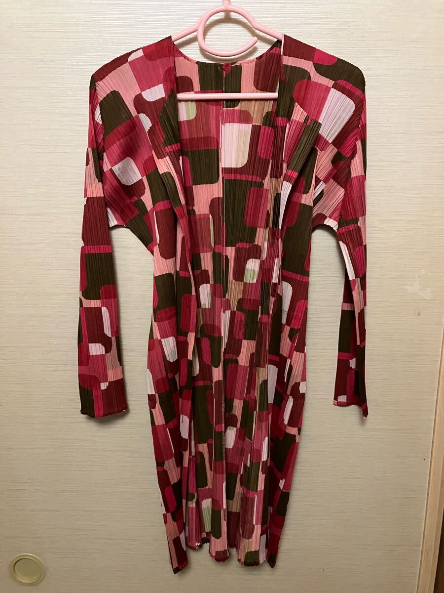PLEATS PLEASE プリーツプリーズ ☆ イッセイミヤケ ISSEY MIYAKE ☆ 赤系カラフルなロング上着 トップス 未使用に近い