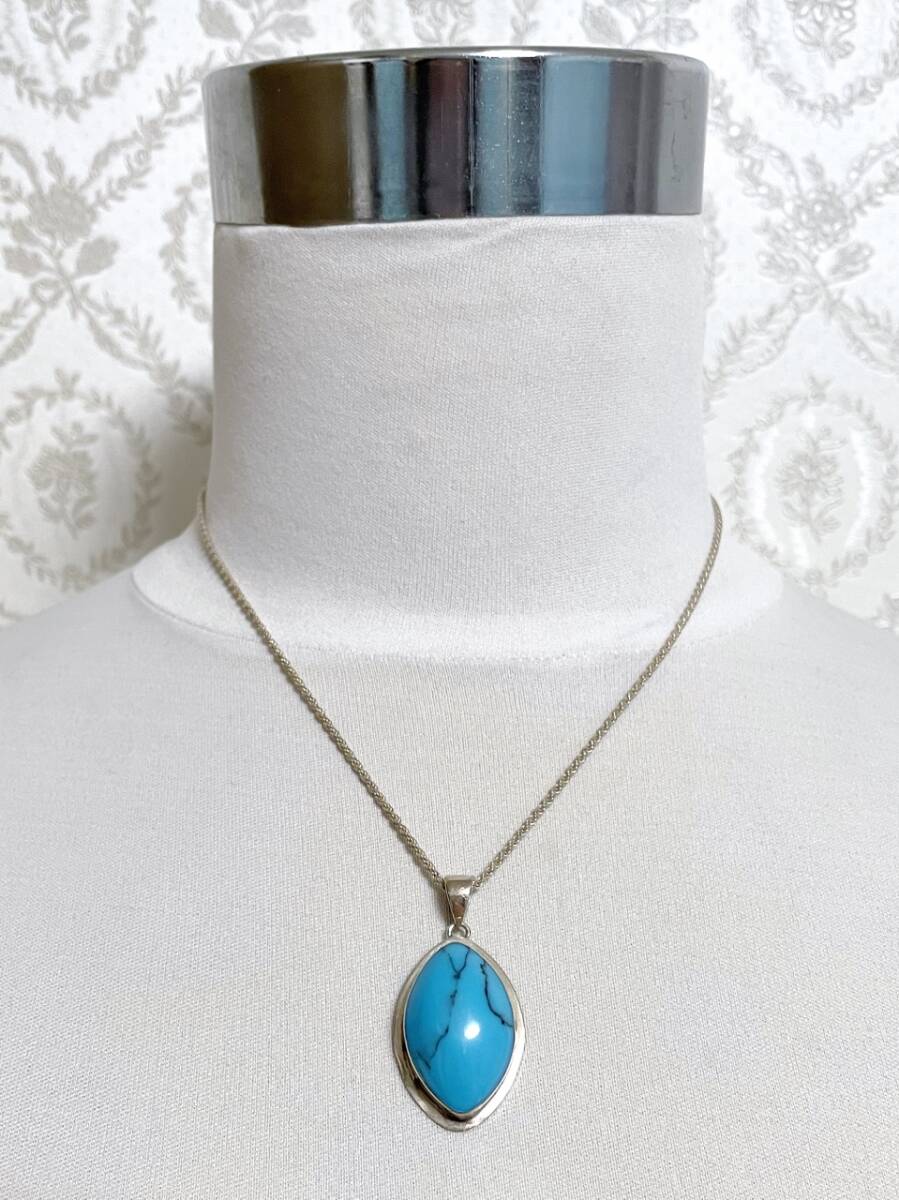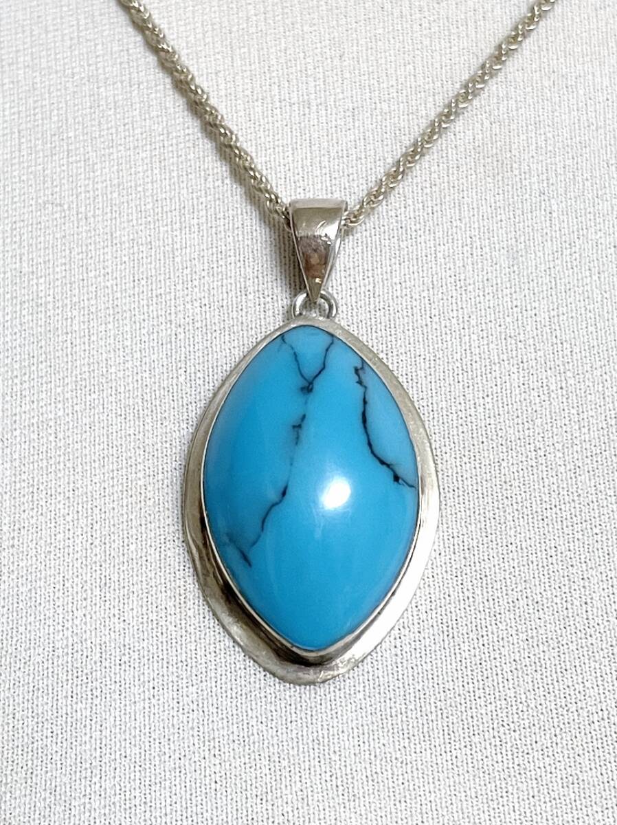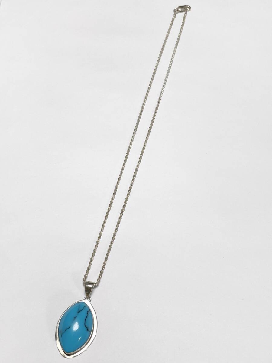 トルコ石 ターコイズ ネックレス シルバー製 チェーン付き