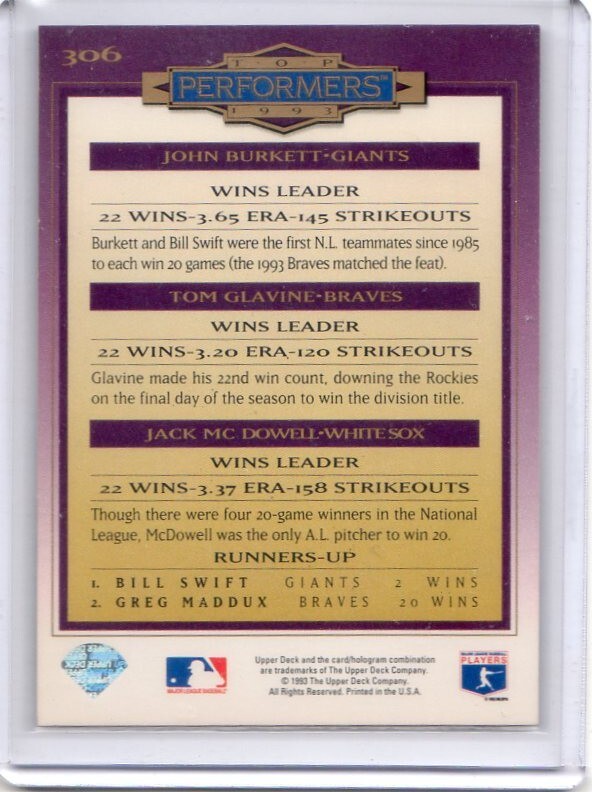 ★☆トム・グラビン カード Vol.13 1993UD TOP PERFORMERS #306☆★ | |