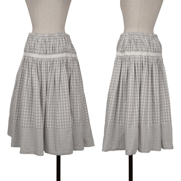 トリココムデギャルソンtricot COMME des GARCONS コットンヘム切替ギンガムチェックスカート グレー白M |