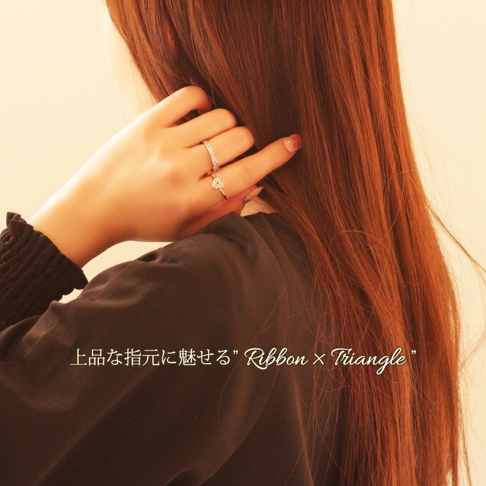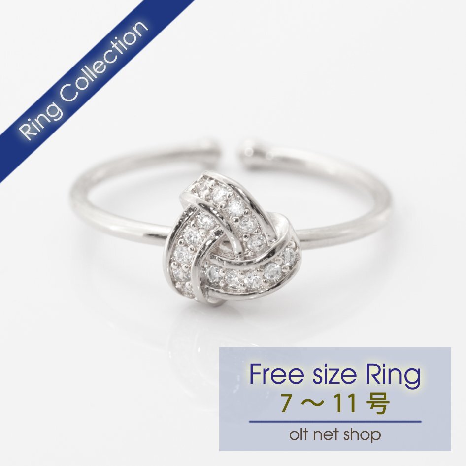7号~11号 調整可能リング / 新品 指輪 K18GP フリーサイズ トライアングル リボン シルバー 18金 ホワイトゴールド レディース プレゼント