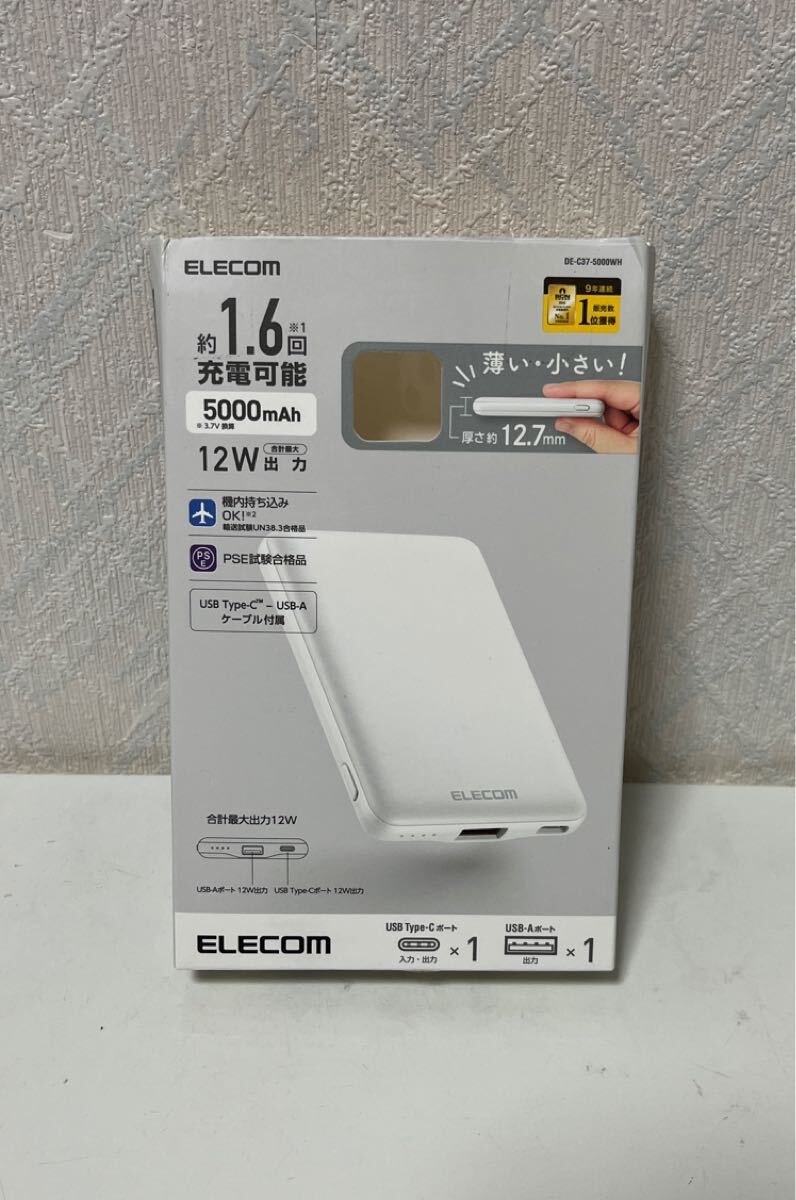 710i0506 エレコム モバイルバッテリー 5000mAh 12W コンパクト 薄型 軽量 入力(Type-C×1) 出力(Type-C×1、USB-A×1) PSE認証