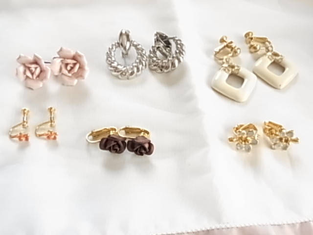 ビンテージ/ヴィンテージ 在庫整理 ジャンク品含みます 昭和レトロも含む 耳飾り 6点セット お花 フラワー等 イヤリング♪♪