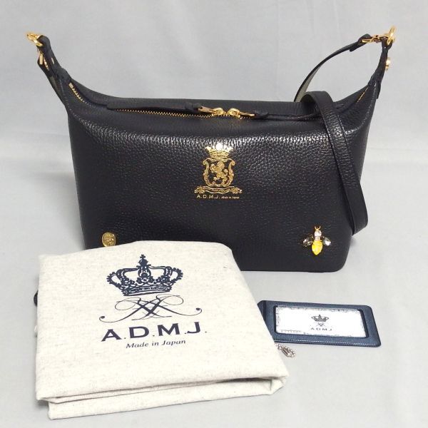 極美品★A.D.M.J. THE BEE スワロフスキー レザー クロスボディ ショルダーバッグ ザ・ビー エーディーエムジェイ ADMJ★