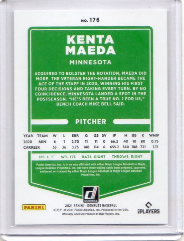 ★商品説明★ | 2021PANINI DONRUSS BASEBALL #176 前田健太ファンの方、是非どうぞ! |