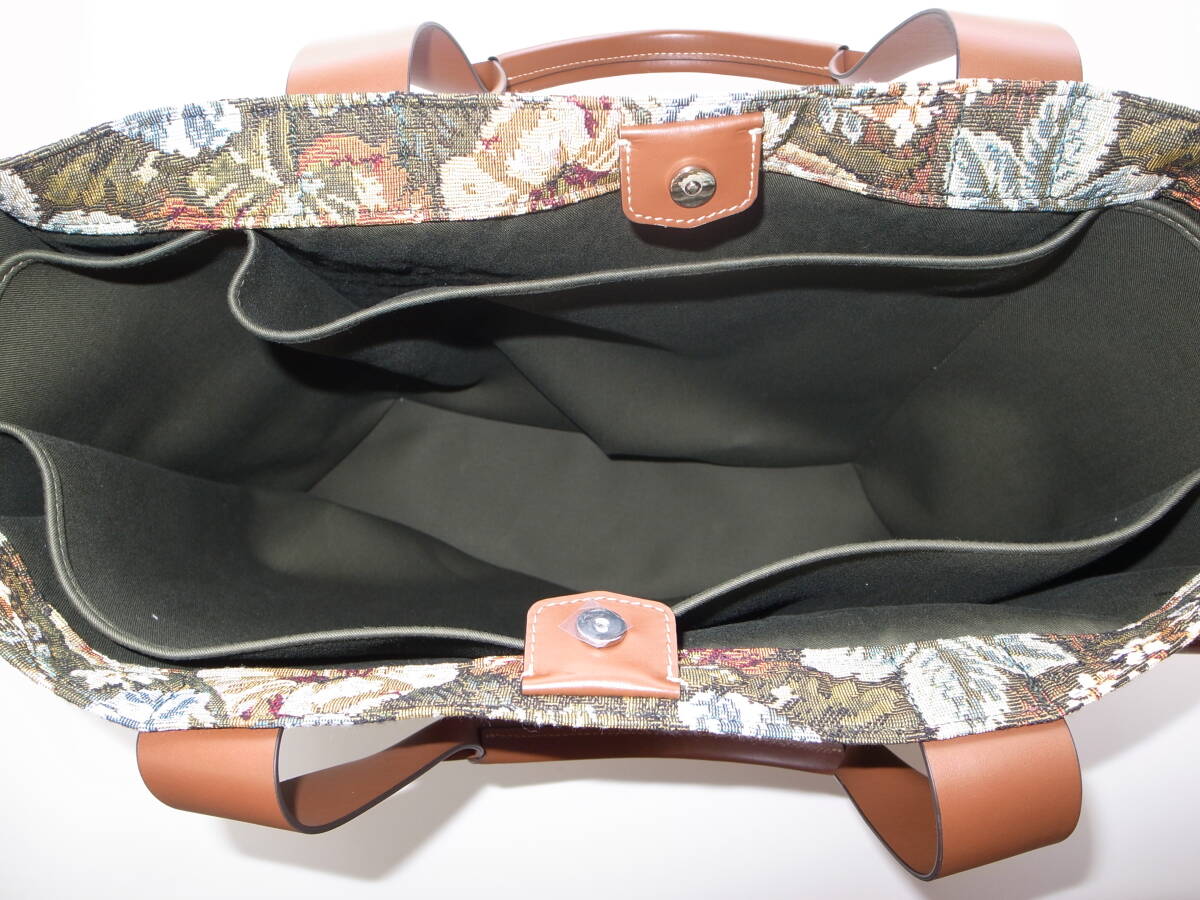 ジャカードのフローラル柄。カーフスキンのトリム。