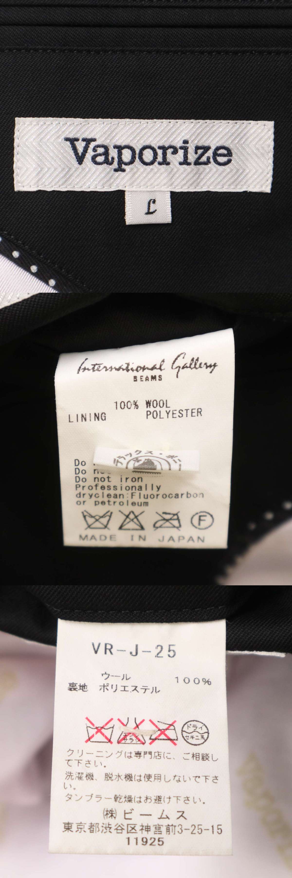 Vaporize ヴェイパライズ BEAMS ビームス 通年 総裏★ ウール100% アンコン テーラード ジャケット Sz.L メンズ 黒