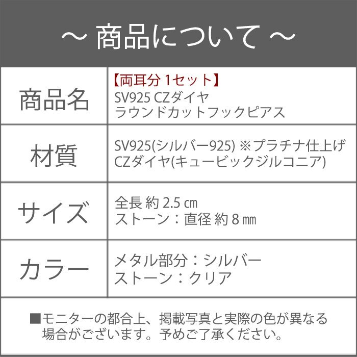ピアス レディース 揺れる 一粒 ジルコニア 大粒 シルバー 銀 プラチナ仕上げ シンプル 女性 / SV925 CZダイヤ ラウンドカットフックピアス