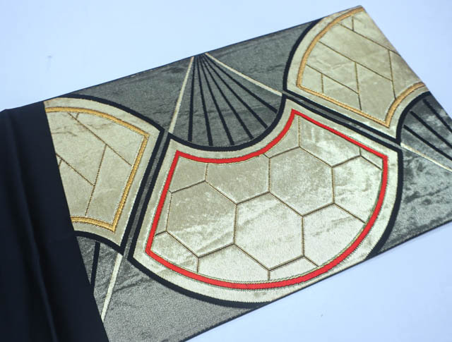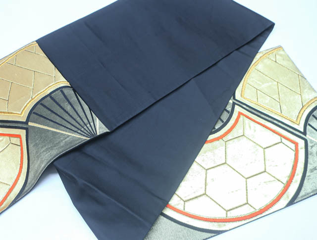 リサイクル商品のため所々スレがございますが、ご着用いただけると存じます。 地色は黒金です。 1枚目の画像が近いお色かと思われます。 素材は正絹です。 |