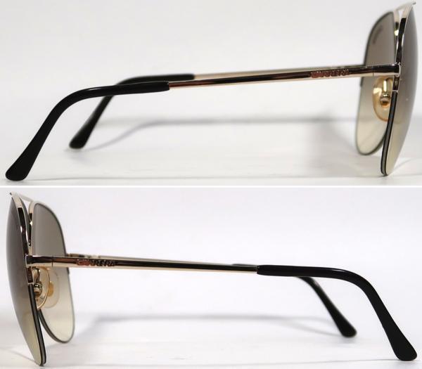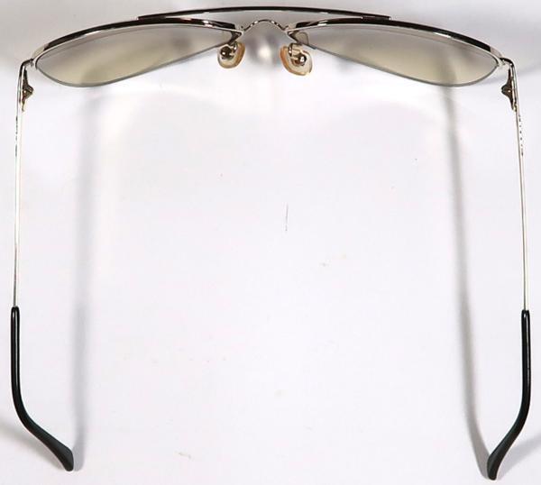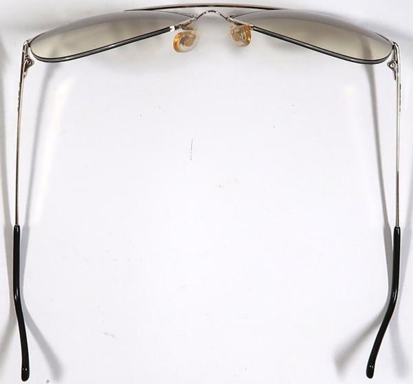 出品は画像の物のみです。使用品ですので擦れや汚れが有ります。メッキの色落ちや擦り傷もあります。製造国やその他の刻印がテンプル内側にプリントが有ったのですが、金属磨きクリームでクリーニングした時にほとんど剥がれてしまいました。レンズは擦れありますが、ひどい傷はないです。レンズは糸をつけてリムに釣っているのですが、結んでいる箇所に緩みがあり隙間があります。画像をご覧ください。このことでレンズはすぐに撮れる事はないですが、指でその部分を押したりすれば、多分ずれて落ちる可能性はあります。ヒンジ間の幅は13cmくらいです。