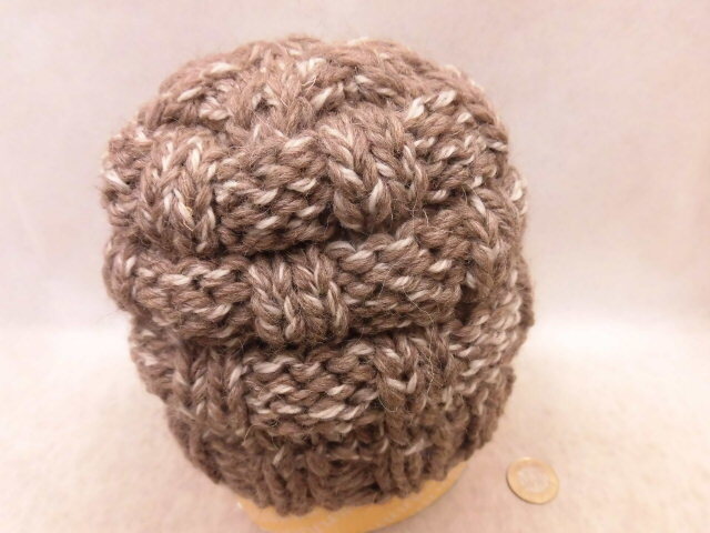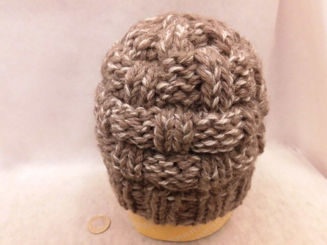 ☆手編み帽子26BB154☆チョコレートブラウンの乱かのこ模様の帽子