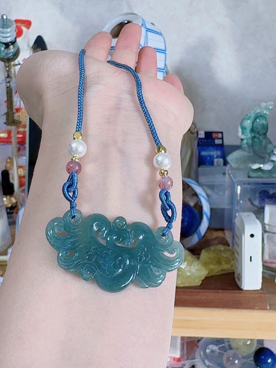 R2-02389 天然本翡翠《本物保証》 ひすいペンダント 一点物 魔除け 昇進 成功 風水 金運 財運 幸運 幸福 縁起物