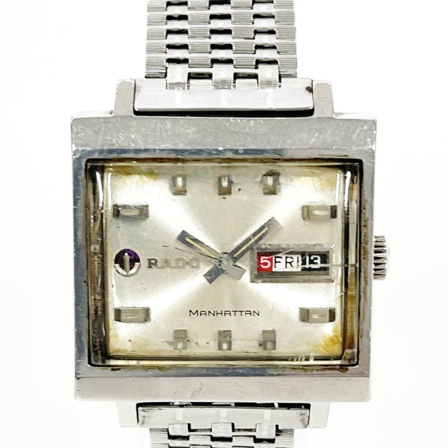 【1円スタート】RADO ラドー MANHATTAN マンハッタン スクエア SS シルバー文字盤 自動巻き ボーイズ腕時計 ジャンク 490660
