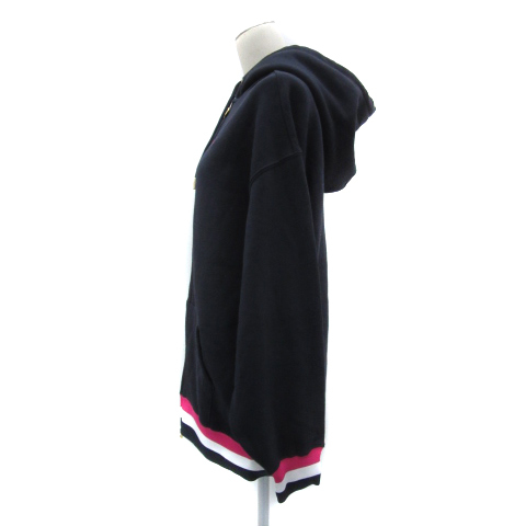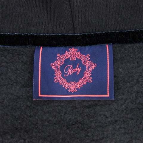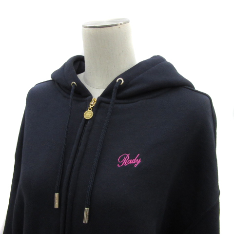 レディ Rady ジャケット パーカー ミドル丈 ジップアップ ロゴ刺? 裏起毛 オーバーサイズ S マルチカラー 紺 ネイビー レディース