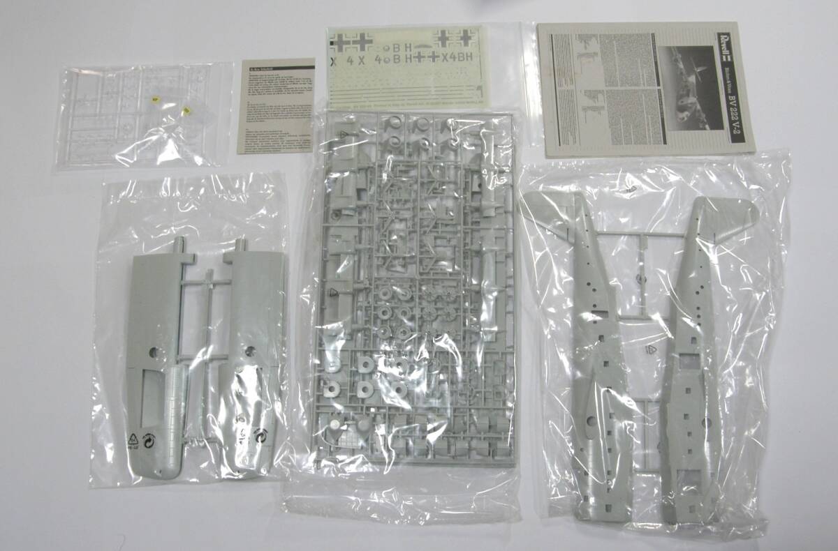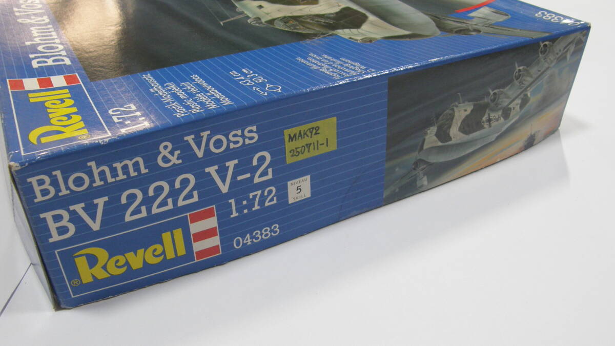 | 【商品説明】 ・商品名称:ブローム&フォス BV222 V-2 (1/72スケール 04383) ・ブランド:Revell ドイツレベル ・発売日:2002年 ・「Revell ドイツレベル」製「ブローム・ウント・フォス BV 222 A V2 ヴィーキング」の1/72スケールキットです。 2002年に販売されたもので、本キットが初版になります。以降、2024年までの間に本キットをベースとしてバリエーション展開しており、デカールやパーツの差し替えなどにより以下の3機種が計4種類のパッケージで販売されました。 ①「BV 222 A V1」:最初の試作機で、民間登録記号をつけてテスト飛行後、ドイツ空軍が使用。1943年2月半ば以前にピレウス港に着水中、海中の残骸と衝突して沈没。 ②「BV 222 A V2」:試作2号機。テスト後ドイツ軍が使用、主翼上に後方向きの連装13 mm MG 131 機関銃を備えた銃座を装備。 ③「BV 222 A V5」:試作5号機。テスト後ドイツ軍が使用、1943年6月にビスカロッセでイギリス空軍・第264飛行隊所属の「モスキート」の攻撃により破壊。 ・上記キットの金型は全て「Revell ドイツレベル」社のものをベースとしており、初版以降の販売元は「Revell」1社のみ、他社からのOEM販売品はありません(2025/10/2現在)。 ・キットのモールドは筋彫りで、繊細かつメリハリがあり、動翼部やアクセスパネルの一部などはかなり深めに彫られています。 実機は全長37メートル、全幅46メートルもある大型機なので1/72スケールでも巨大そのもの、製作前に(制作後もですが)場所の確保と整理整頓が必要です。 ・部品番号は137番まで割り当てられており、機体の大きさに比べると案外少なめです。コクピット内部から船体内部に至るまで、椅子や機器類がたっぷりパーツ化されていますが、フィギュアは残念ながらついていません。搭乗兵員は最大92名で全ては載せられませんが、乗員の6名は他キットから出張していただき、何とか本機に乗せてみたいところです。 ・デカールは2機種分がセットされています <デカール> ・ドイツ空軍 1./SAGr. 129 「X4+BH」 1944年 Bicarosse ・ドイツ空軍 Lufttransportstaffel 222 「X4+BH」 1943年 【商品状態】 ・外箱の表面に擦れと凹みが見受けられます。