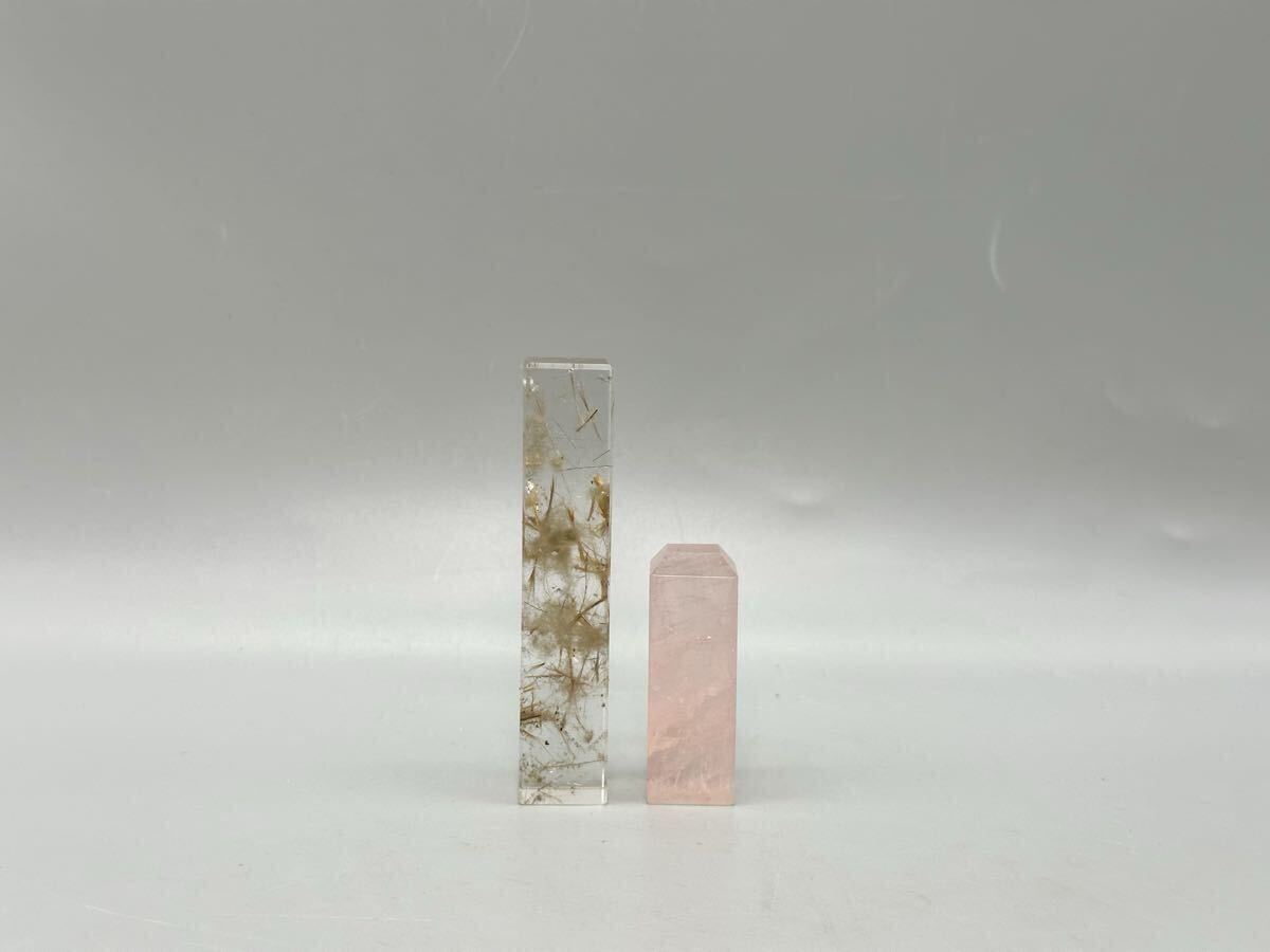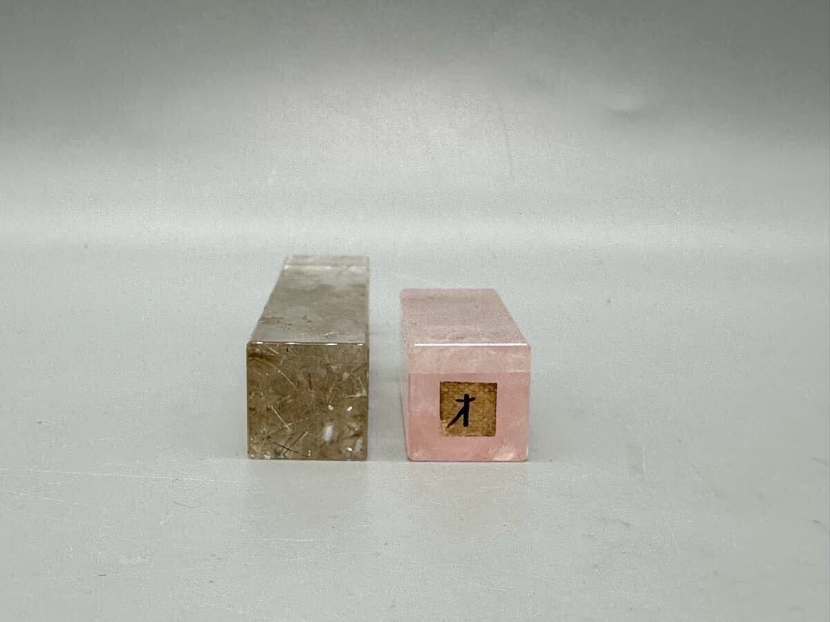 2点セット 水晶印材 ピンク水晶印材 篆刻 寿山石 印鑑 書道 印章 文房具 書道具 紙筆 硯 書法古墨文房 美術 古印材
