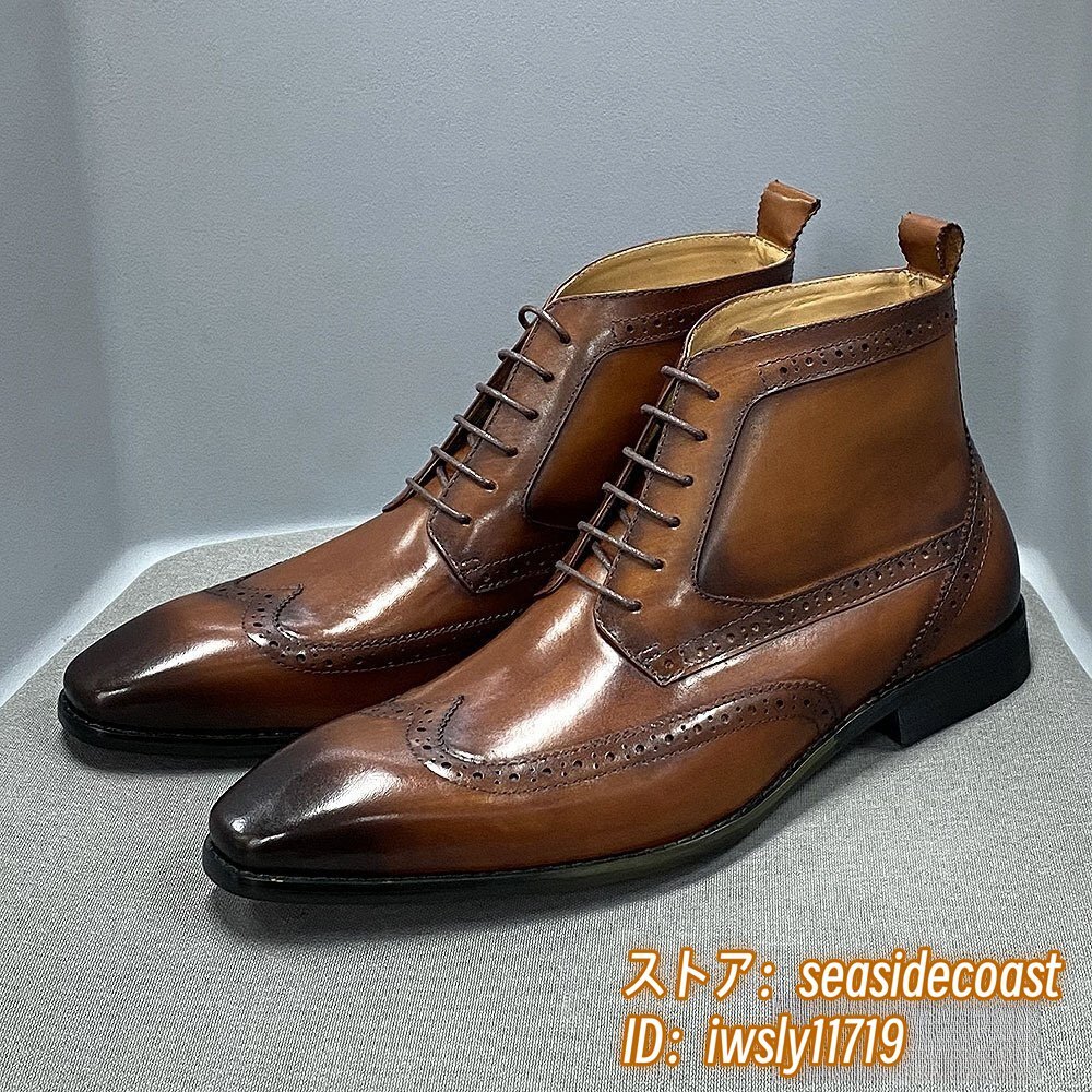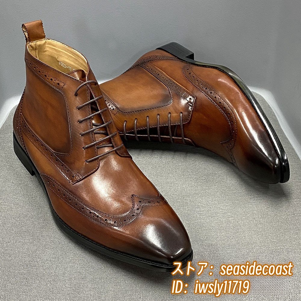 定価12万 新品 レザーブーツ 最高級メンズブーツ ショートブーツ 牛革 マーティンブーツ 本革エンジニアブーツ 職人手作り ブラウン 25.0cm