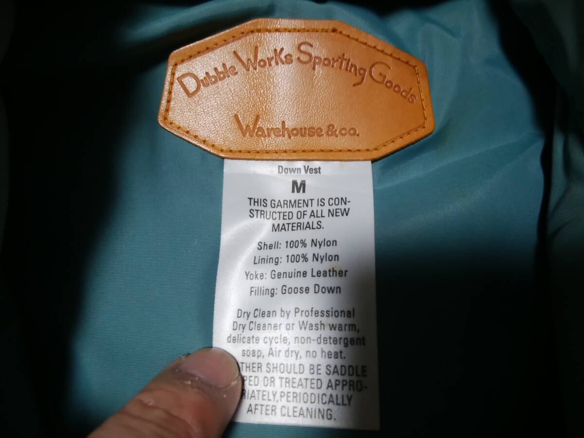 【ブランド】WAREHOUSE レザーダウンベスト ヨーク部分:レザー(本革) 中綿:グースダウン 都内直営店購入品