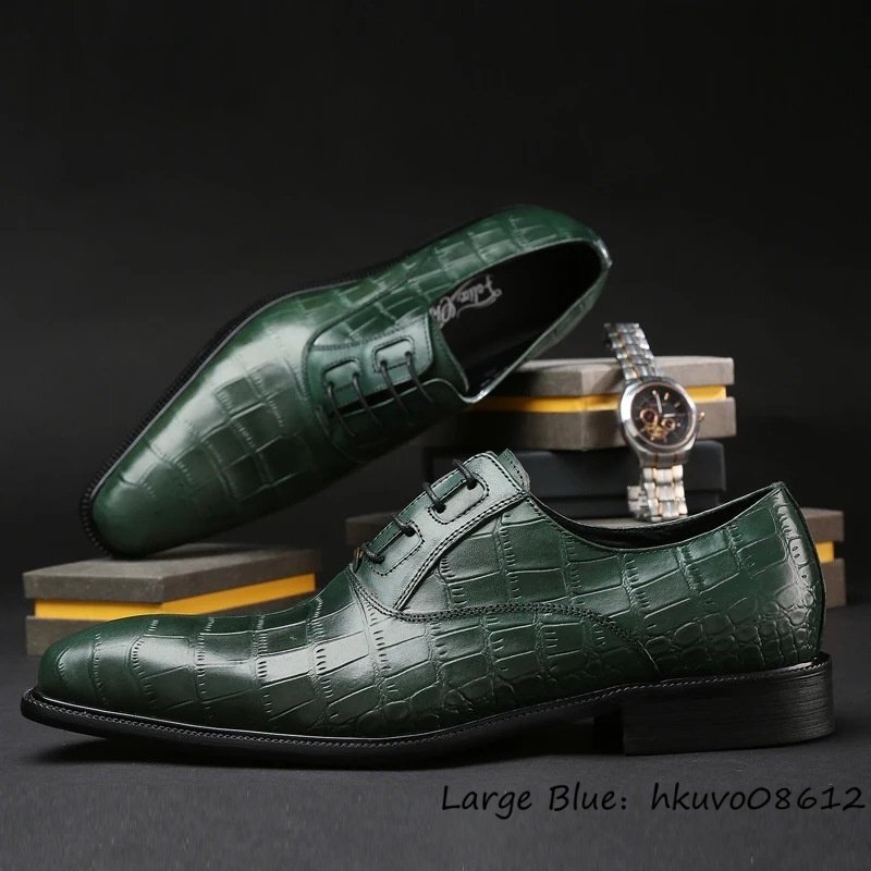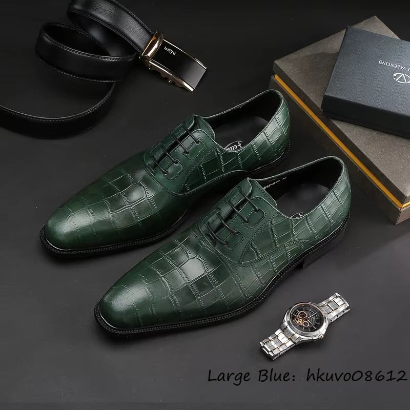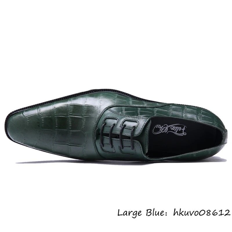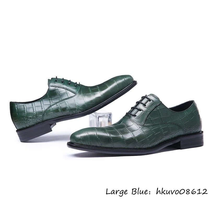 最高級◆メンズ 本革 鰐柄 ビジネスシューズ 職人手作り レザーシューズ 牛革 革靴 紳士靴 結婚式 新品 ドレスシューズ グリーン 24.5cm