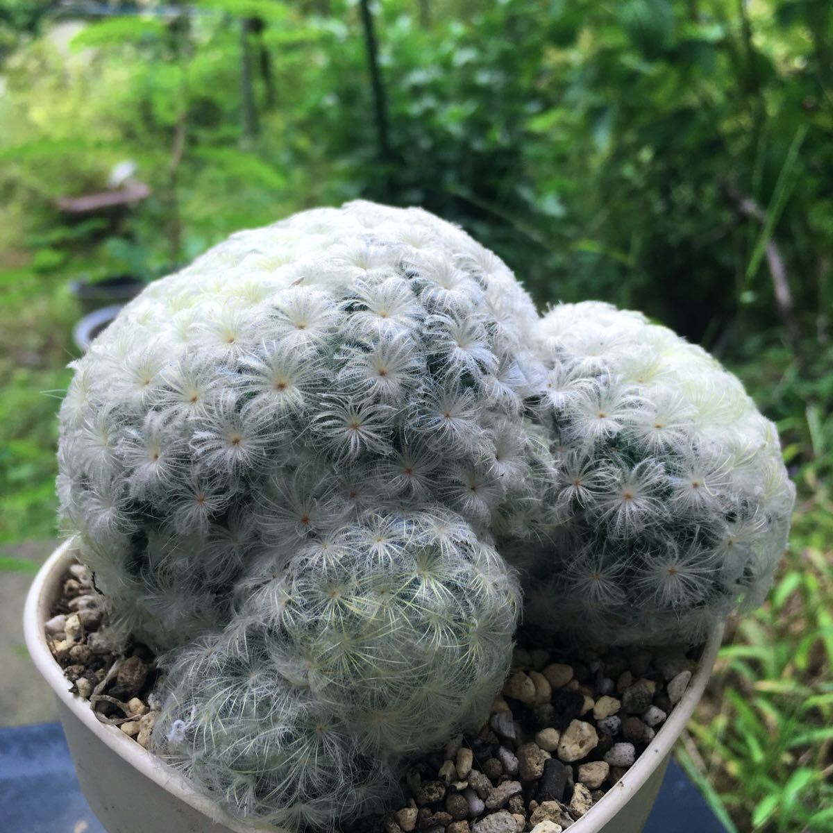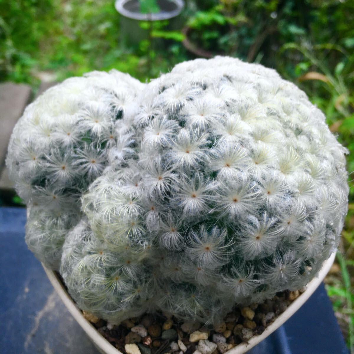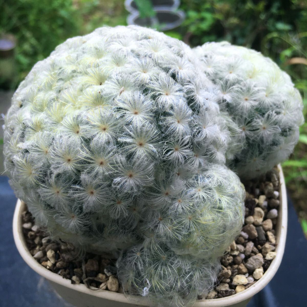 白くふわふわした毛が表面に生えていて、綺麗な丸いドーム状の株が特徴的な品種です。