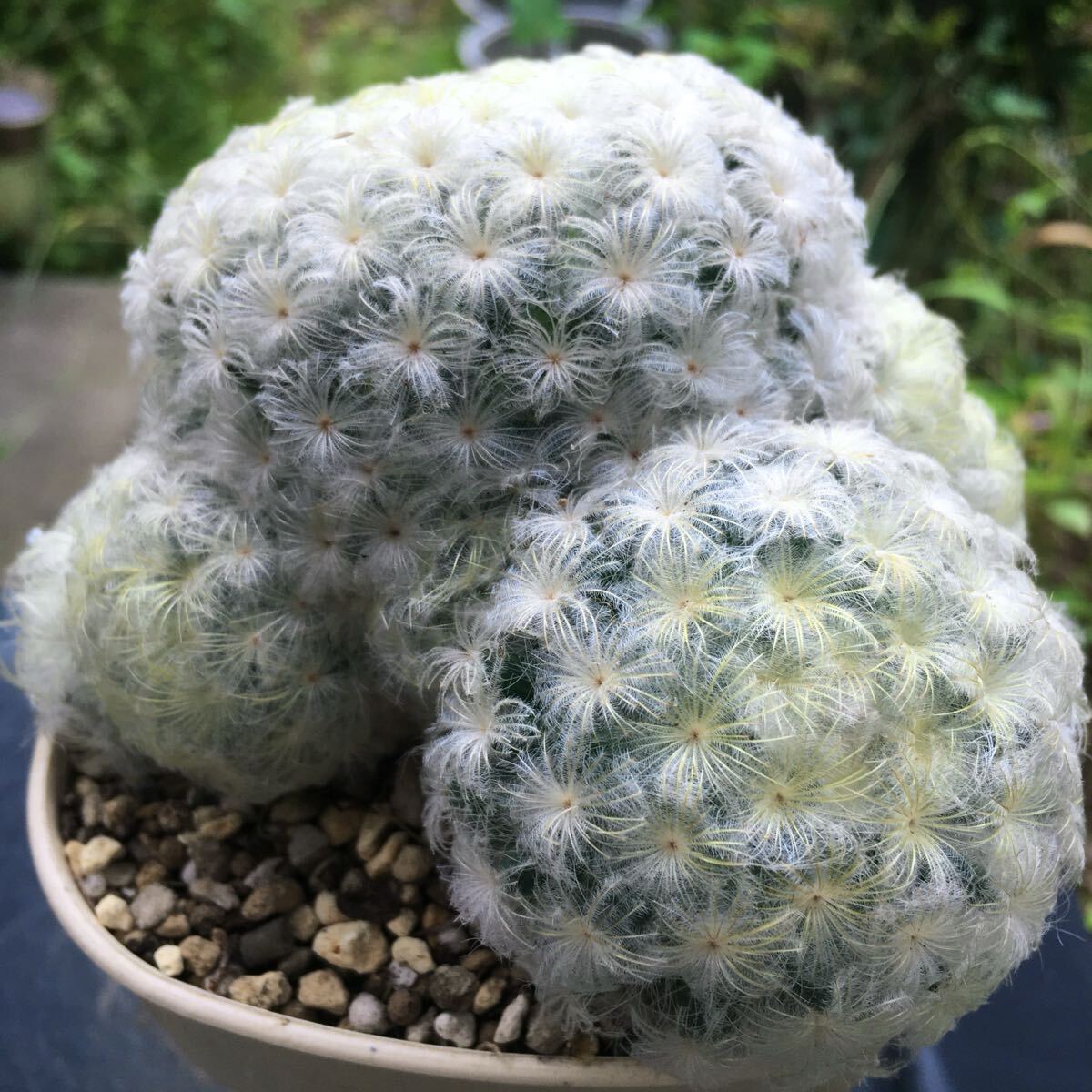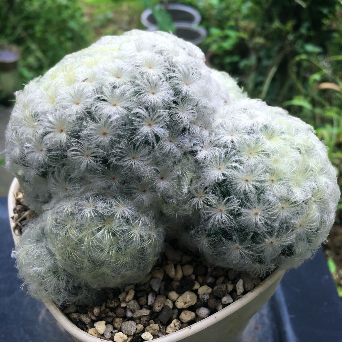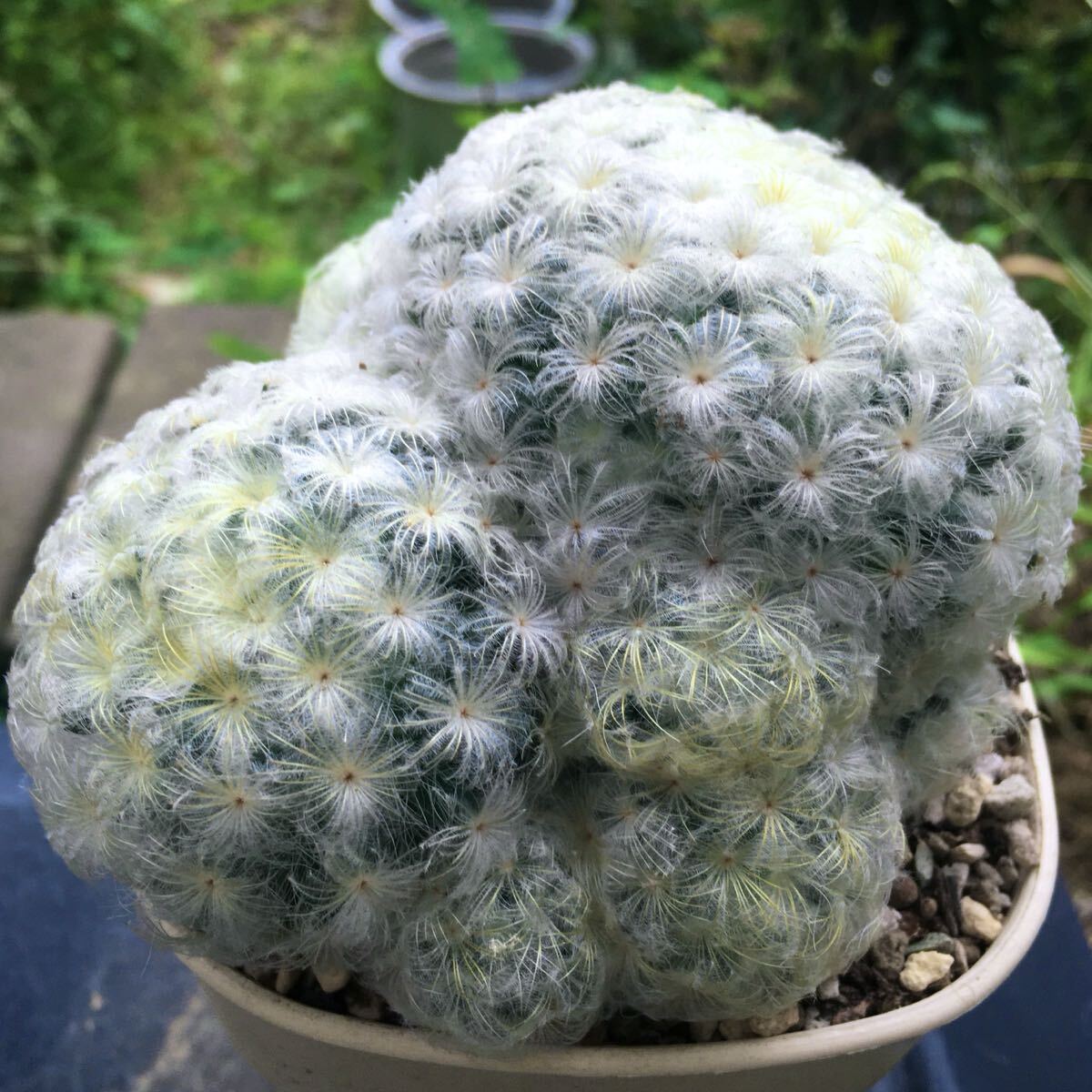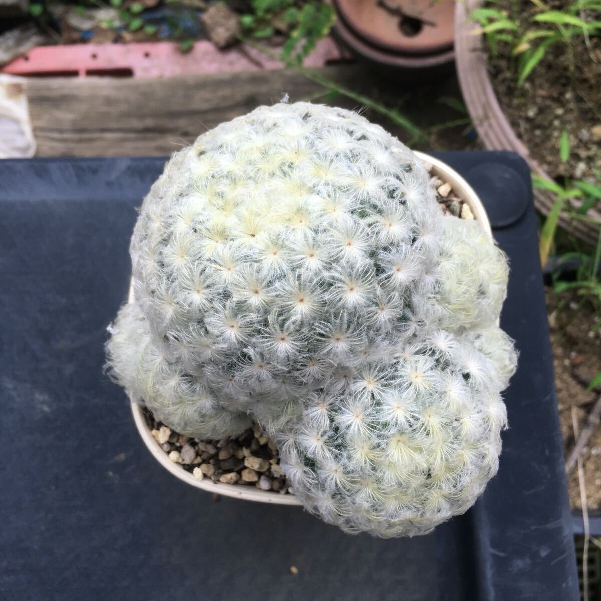 白くふわふわした毛が表面に生えていて、綺麗な丸いドーム状の株が特徴的な品種です。
