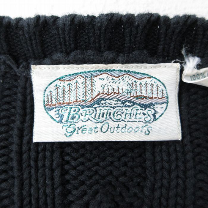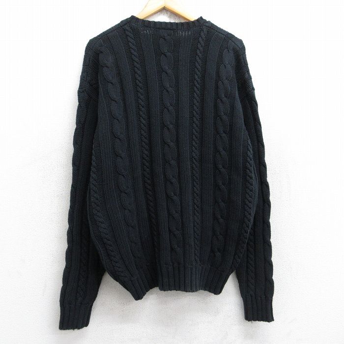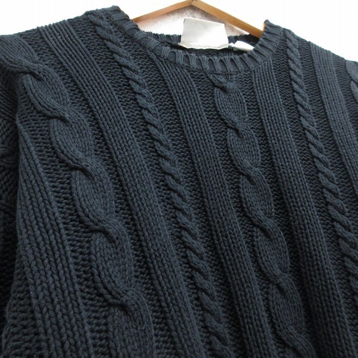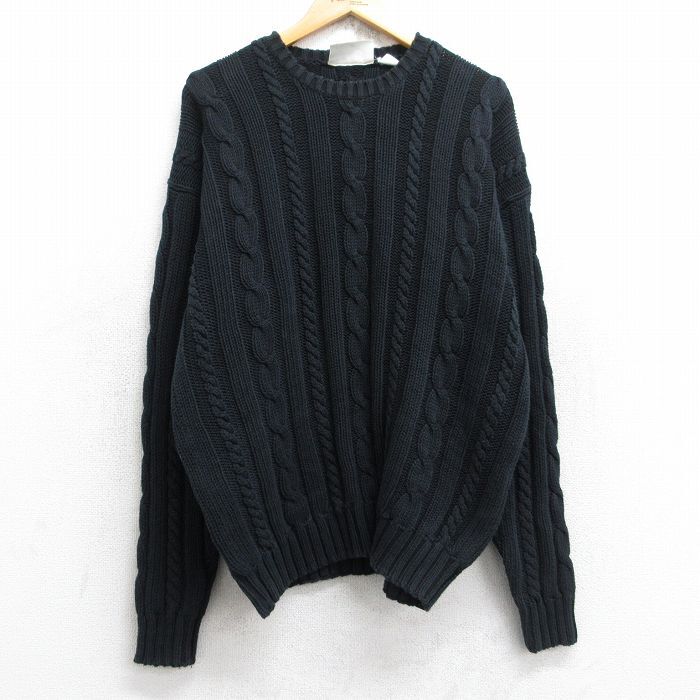 【商品名】 XL★古着 長袖 ケーブル セーター メンズ 90年代 90s コットン クルーネック 黒