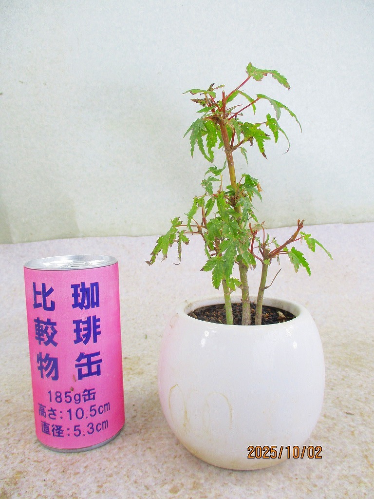 [緑の市場] ミニ盆栽 紅葉 寄植(1091白釉丸鉢)全高:20㎝【小型送料】*同梱包対応「まとめて取引」厳守*60サイズ送料明記 同梱包ご希望は「まとめて取引」でお手続きして下さい。 *同梱包は[緑の市場]のタイトルでの出品商品に限ります。類似画像で他IDの出品にご注意下さい。* 単品(セット品は1組)発送ご希望の際は「まとめて取引」の手続きをしないでください。入札前に必ず下記の「発送方法」に記載の送料を確認してください。 ヤフオクの取引においてメッセージは特に必要ありません。挨拶などを省略できる取引システムですし取引ナビの通知で進行状況が判るので都度の連絡(送金や受け取りのメッセージ)は不要です。配送日時指定や連絡事項のみお知らせください。双方合理的に進めましょう。また、お急ぎの方は入札をご遠慮ください。業務時間内での対応になります(土日祝休業)。 寸法は鉢を含む全高です。(樹高ではありません。) 一緒に撮影しているスケールまたは比較物をご参照ください。 飲料缶は高さ約10㎝、直径約5㎝です。 500mlペットボトルは高さ約21㎝です。 ■画像の様子から経時変化しますので撮影日(画像記載)からの変化はご了承下さい。 *花物・実物は特にご注意下さい。 画像(撮影時)では開花品でも、お届け時は花終わりを想定して下さい。 ◎落札が無い場合は、自動再出品が継続されます。 撮影から2か月経過した場合、どんどん開始価格が下がりますが、商品の劣化も進みますので、 撮影日からの期間経過品はある程度の劣化を想定で入札にご参加下さい。 商品により90日間程度(物によりそれ以上)同じ画像を使用しますので、必ず撮影日をご確認下さい。 |