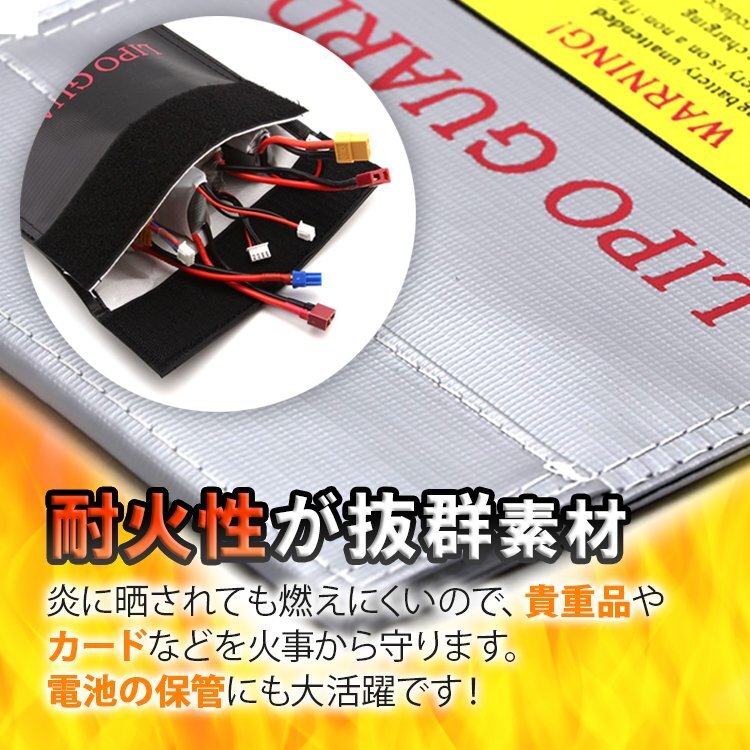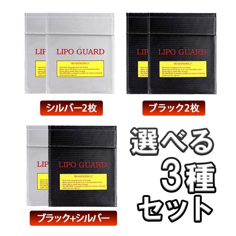 ◆セーフティーバッグ2枚 防火袋 耐火ポーチ LiPoGuard 防火 防爆 防災 貴重品収納 書類、通帳、携帯、リチウム電池、リポバッテリー、モバイルバッテリーの保管に【ブラック2枚】LG1823S2