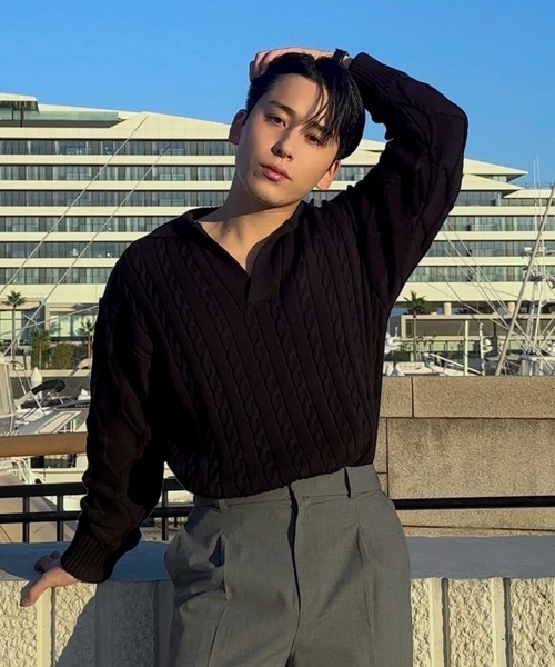 キーワード:セーター ニット メンズ 長袖 無地 秋 冬