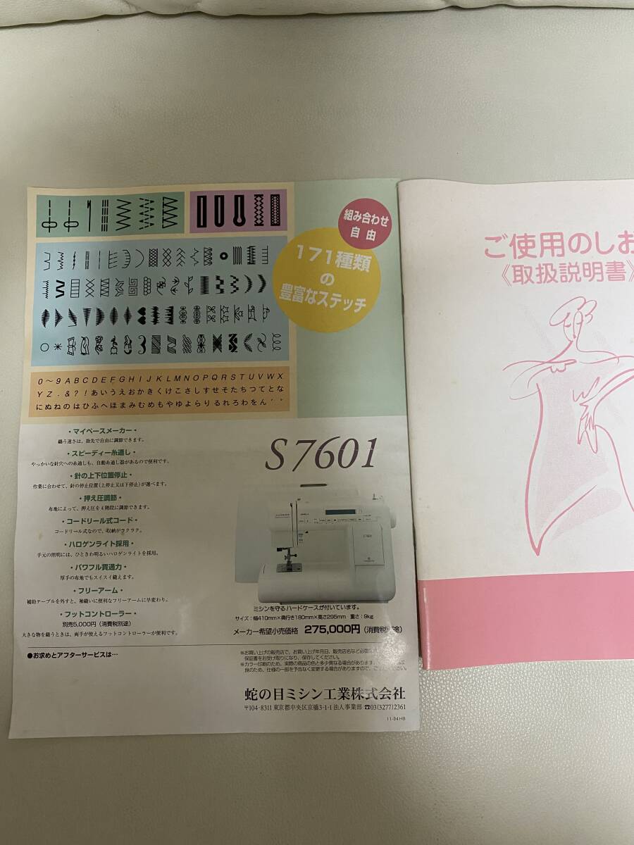 JANOME ジャノメ コンピュータミシン S7601 高機能・高性能実用縫い・文字・模様 275,000円(税別