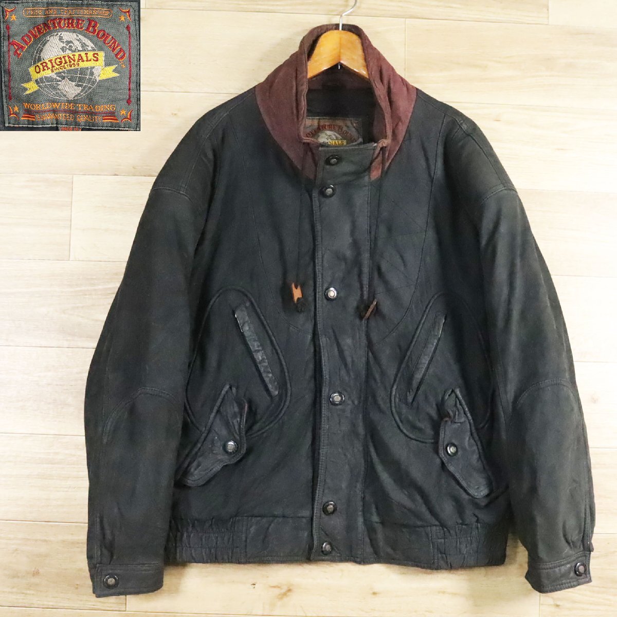 D6T/D7.4-4 アメリカ古着 ADVENTURE BOUND レザージャケット 本革 フライトジャケット 革ジャン 皮ジャン XL