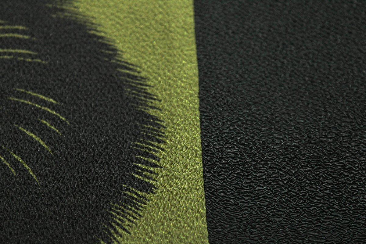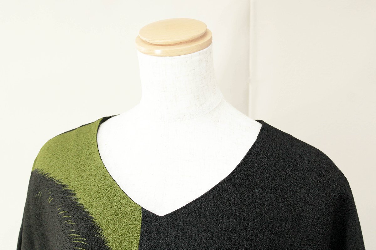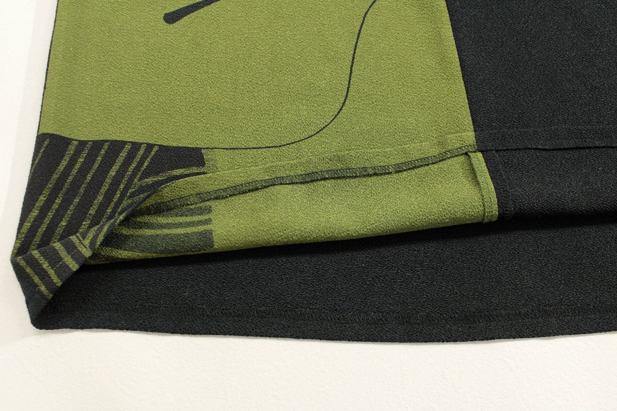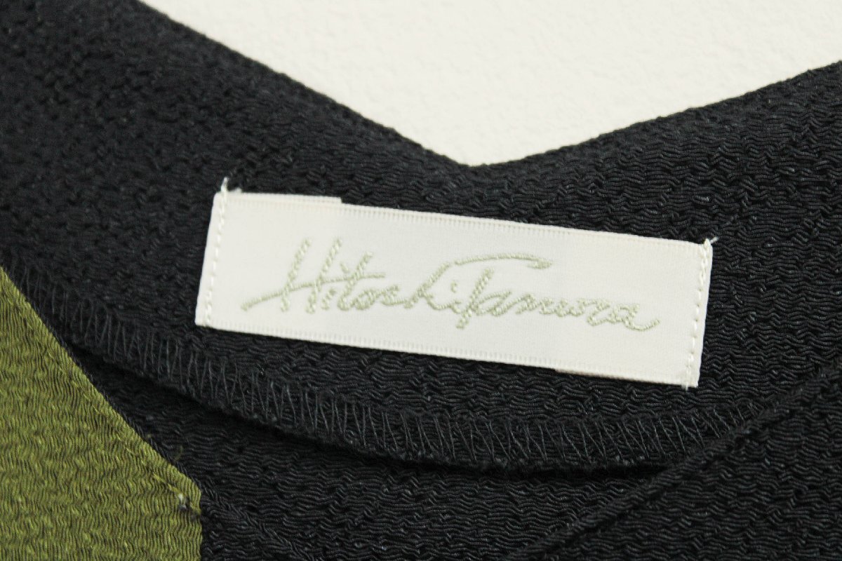 ☆美品☆ヒトシタムラ詩仙堂/ちりめん織り歌舞伎役者絵柄切替半袖チュニック:黒系yx539