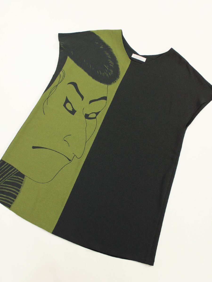 フロント右サイドには大きな役者絵柄プリントがあしらわれた、インパクトのあるデザインです。