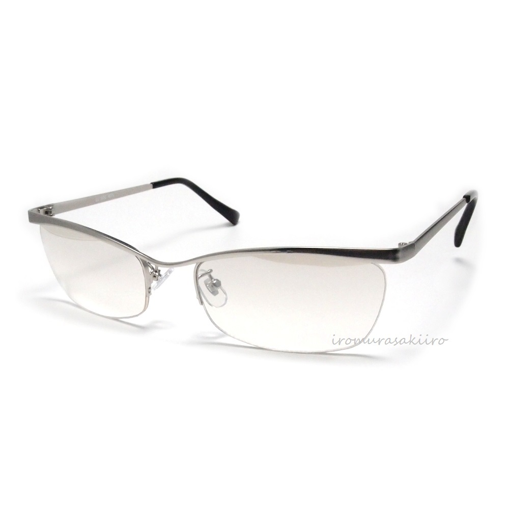 リームレス型 サングラス グラデーションレンズ 新品 メンズ シルバーフレーム UVカット グレー かっこいい 薄い色 目が透ける 22198CL