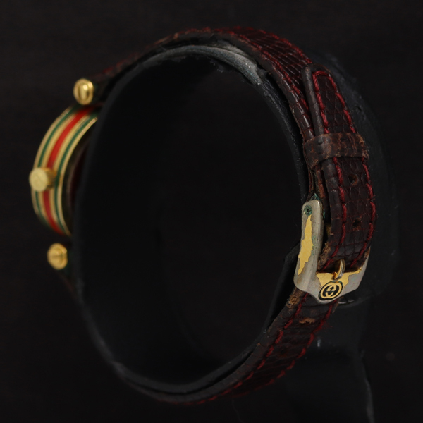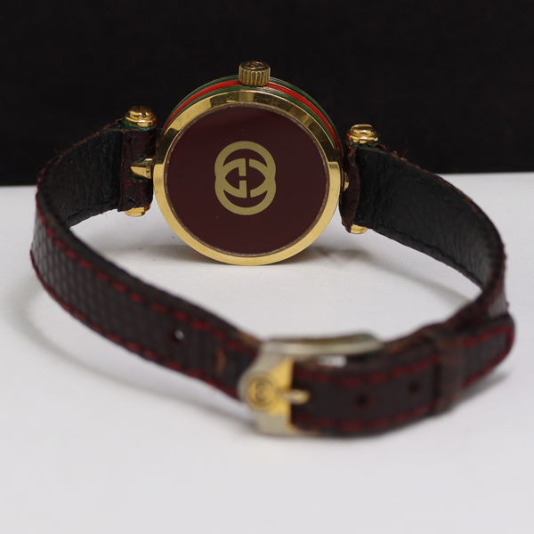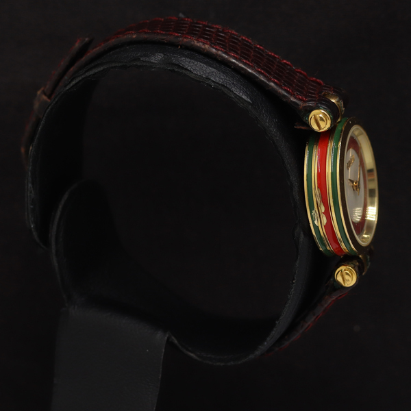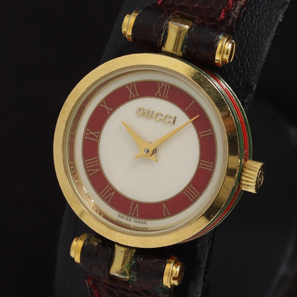 1円 稼働 グッチ シェリーライン QZ アイボリー/レッド文字盤 レディース腕時計 0396000 9PRT MST