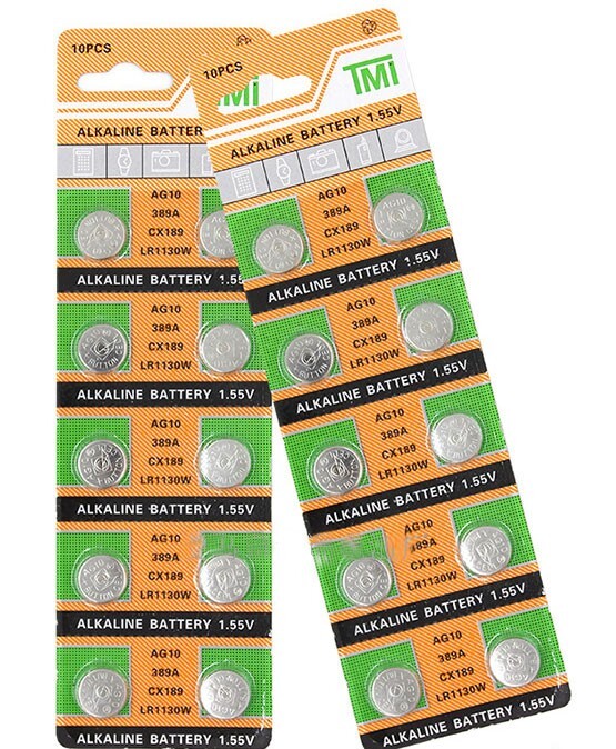 時計用電池AG10 LR1130/SR54互換 お子様のオモチャや…動かなくなった時計などに是非どうぞ!!コンスタントに売れますので常に新しい電池が入荷しております ・直径:約11.6mm ・厚さ:約3.1mm ・電圧:1.55V ・性質:アルカリボタン電池■互換性→LR54、AG10、GP189など