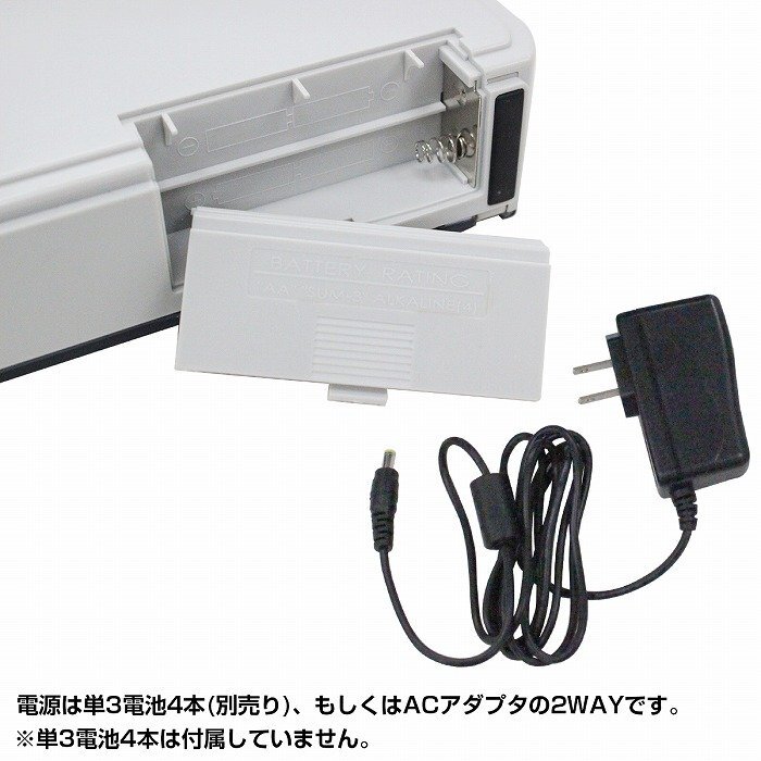 電源:ACアダプター(100-240V)/単三アルカリ電池4本