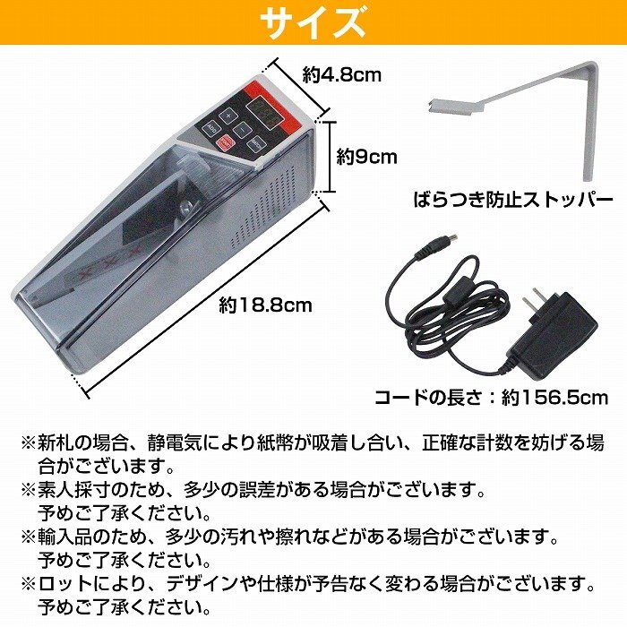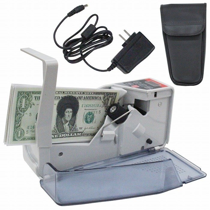 新紙幣対応 マネーカウンター 自動 紙幣計数機 ハンディ 札 紙幣 枚数 計測 3桁 ケース 電池 単3駆動 外国 会計 小型 高速