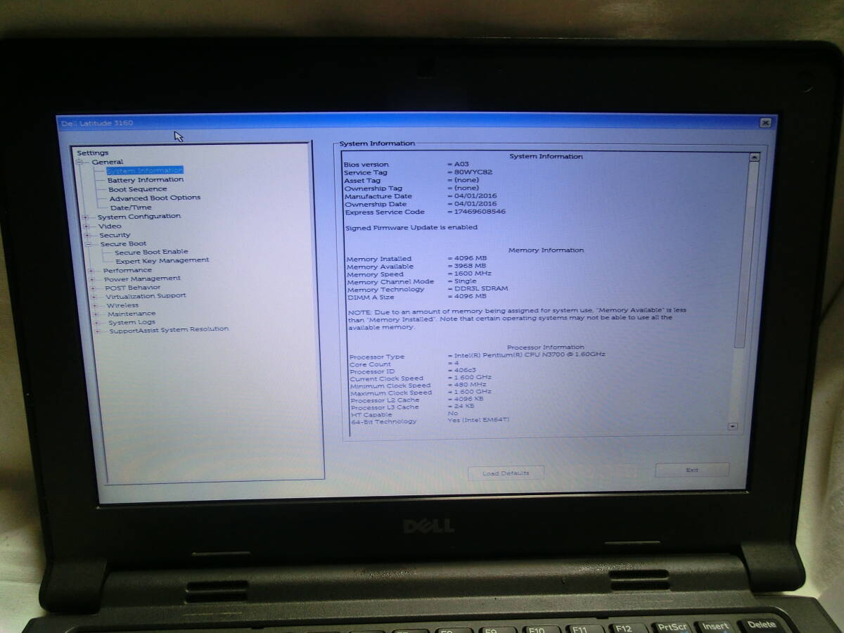 【ジャンク】DELL Latitude 3160(液晶、バッテリー不調)/Intel Pentium N3700/メモリ4GB/ストレージ無/管:NPC2509-902