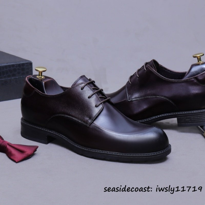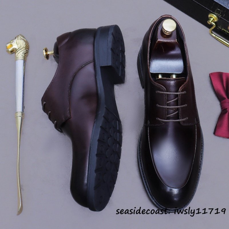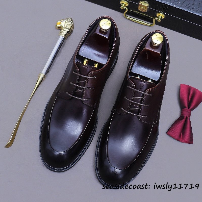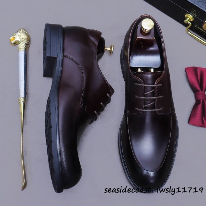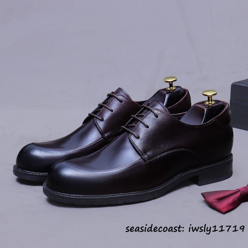 定価9万★牛革 メンズ ビジネスシューズ 本革 6cmシークレット レザーシューズ 職人手作り イギリス風 結婚式 紳士靴 革靴 ブラウン 27.0cm