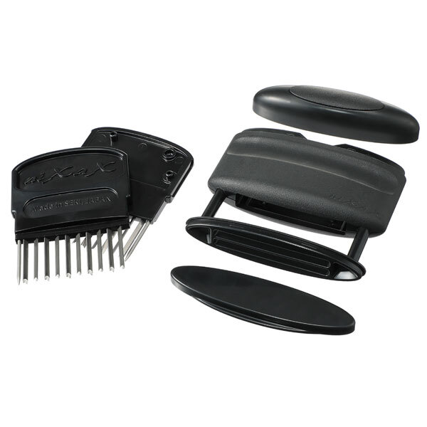 内 容 | ■様々なお肉料理をご家庭で 美味しく、食べやすく! ニクサスプロ ■サイズ 約12.5×3.5×12.8cm ■重さ 約230g ■材質 ・本体:ABS樹脂 ・ブレード:ステンレス鋼 ■本体耐熱温度 90度 ■取扱説明書(兼レシピ)付き ■日本製 ◆参考価格 8800円相当 熟練職人が一本一本仕上げた20本の彫刻刀のスジ切り器。 丸刀の形をしたU字型の刃が硬いスジも逃さず、 X型にスジを切れるように刃を配置しており、 横にずらしてプッシュしていくだけで効率的にスジを切ることができます。 また、両端に刃よりも少しだけ長いガイドピンを設置しているので 刃先がまな板に直接当たらず刃を保護し、まな板を傷つけにくい工夫も。 お手入れも簡単に分解ができ、ブレードも2枚に分かれるので 刃先をスポンジで洗いやすくなっています。 食器洗い機の使用も可能です。 使い方が分かりやすい取扱説明書兼レシピ付きなので ステーキ、生姜焼き、とんかつ、からあげなど様々なお肉料理でご使用ください。 |