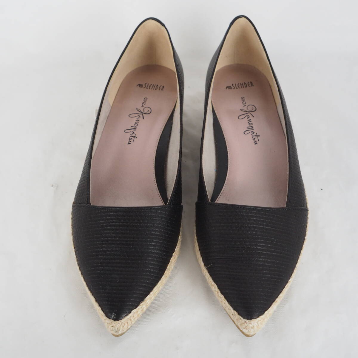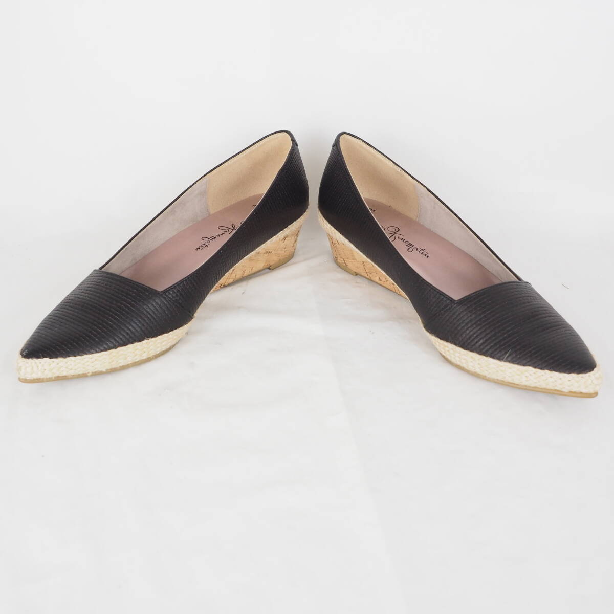 ページをご覧いただきありがとうございます^^靴、ブーツを中心に出品しております。 ブラックにナチュラルなウッド調ソールを組み合わせた、上品さとカジュアル感を兼ね備えた一足です。 ポインテッドトゥのシャープなラインで女性らしさを演出しつつ、安定感のあるウェッジソールで歩きやすさも魅力です。 ☆商品詳細☆