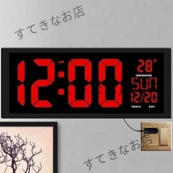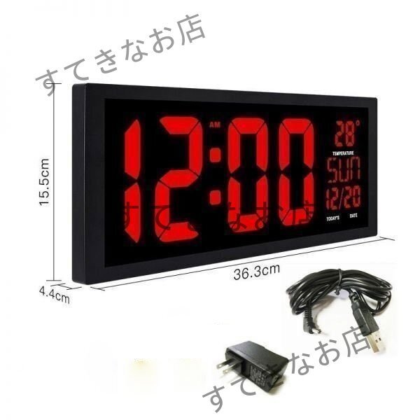 掛け時計 壁掛け時計 置時計 デジタル LED USB インテリア モダンデザイン ビッグ桁 レッド★1点