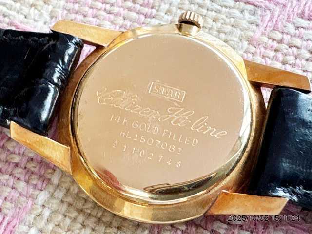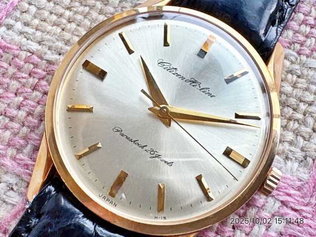 | タグ付きデッドストック(未使用 シチズン ハイラインパラショック 25石 手巻紳士腕時計 14k |