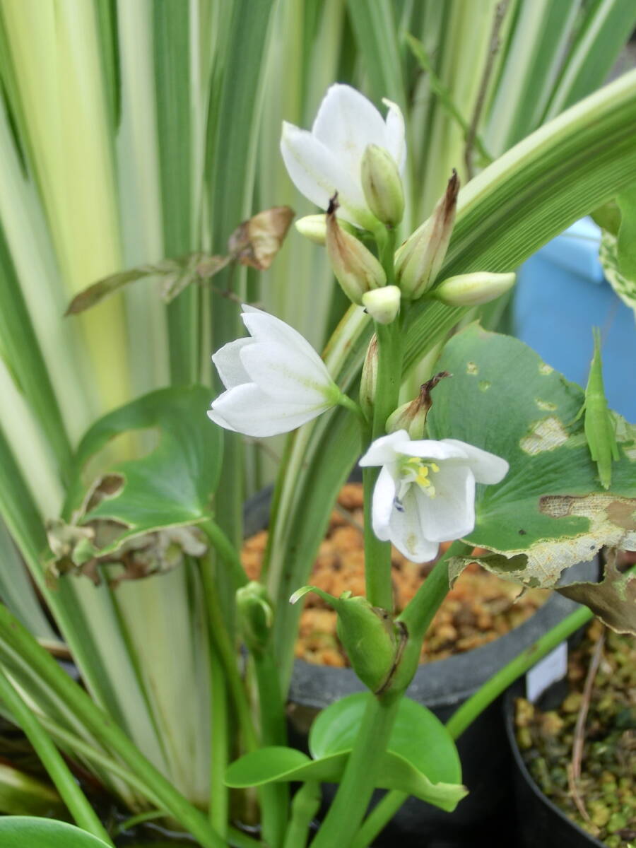 栽培継承品種もの ミズアオイ純白素心花 種子莢 5つ  以下検索用 斑入り 水草 山野草